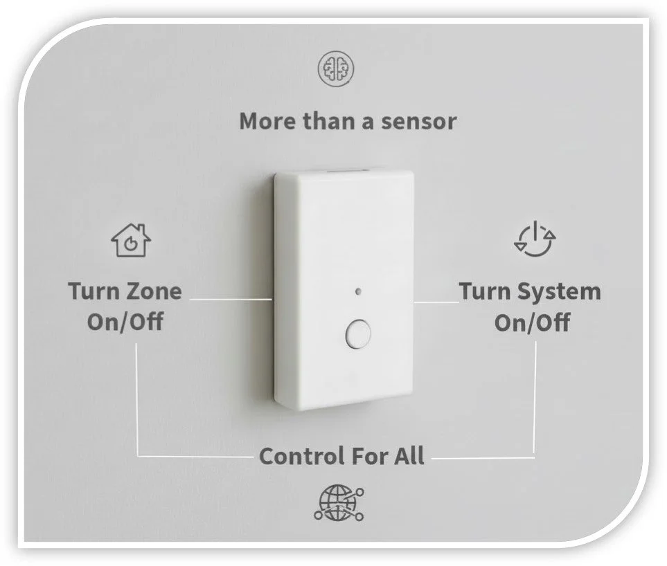 If you’d prefer the option of turning the system or zones on/off with a physical button, MyPlaceIQ sensors are the perfect solution.